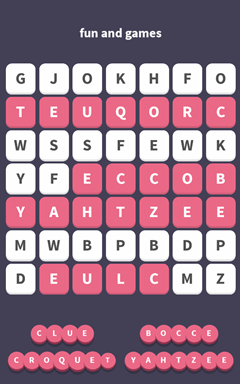WordWhizzle Search Puzzle Answers for December 12, 2016 is based on Clue “fun and games”. Let’s put them all together using the key to WordWhizzle Search for today: