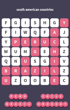 WordWhizzle Search Puzzle Answers for December 14, 2016 is based on Clue “south american countries”. Let’s put them all together using the key to WordWhizzle Search for today: