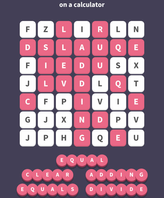 WordWhizzle Search Puzzle Answers for February 7, 2018 is based on Clue “on a calculator”. Let’s put them all together using the key to WordWhizzle Search for today: