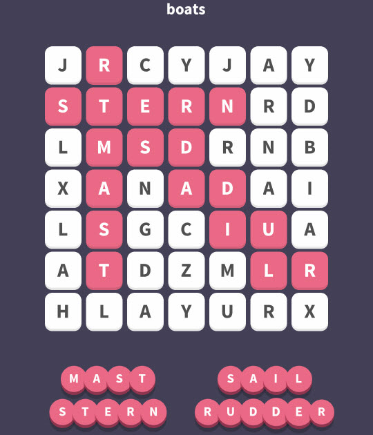 WordWhizzle Search Puzzle Answers for January 26, 2018 is based on Clue “boats”. Let’s put them all together using the key to WordWhizzle Search for today: