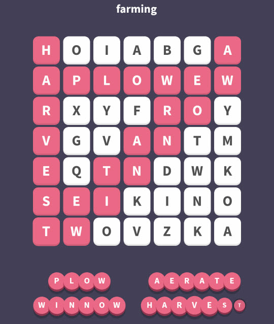 WordWhizzle Search Puzzle Answers for January 28, 2018 is based on Clue “farming”. Let’s put them all together using the key to WordWhizzle Search for today: