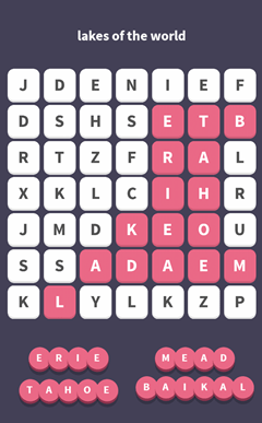 WordWhizzle Search Puzzle Answers for November 28, 2016 is based on Clue “lakes of the world”. Let’s put them all together using the key to WordWhizzle Search for today: