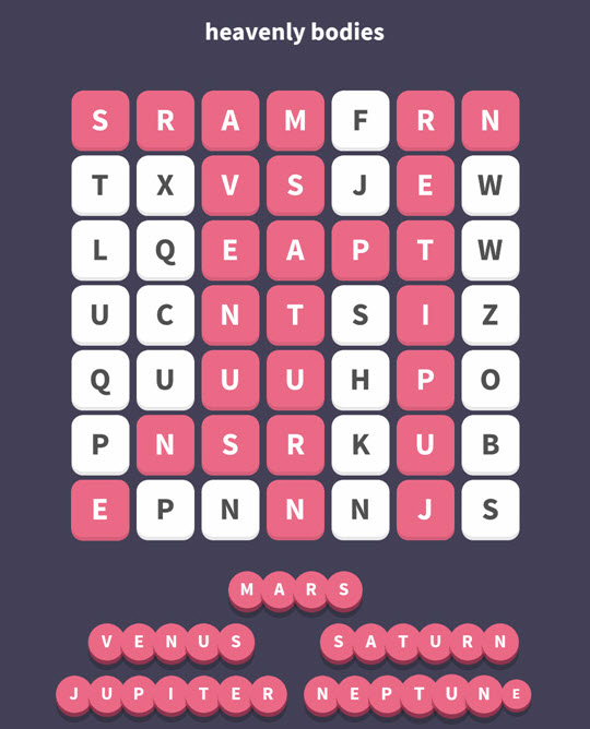 WordWhizzle Search Puzzle Answers for October 6, 2017 is based on Clue “heavenly bodies”. Let’s put them all together using the key to WordWhizzle Search for today: